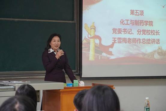 最后,院党委书记王雪梅作总结讲话,她首先代表学院党委对参加培训的新学员表示热烈的欢迎。而后,王雪梅以为什么学党史为切入点,指出历史是最好的教科书,强调培训学员要在学习党史中悟思想、办实事。同时她也鼓励大家进一步加深对党的性质、纲领、任务和宗旨的了解,并提出四点希望:一是希望大家学史明理,坚定理想信念,牢记入党初心使命,努力成为一名又红又专、德才兼备的好青年;二是希望大家学史增信,增强“四个意识”,坚定“四个自信”,做到两个“维护”。在党课培训中认真学习党的基本理论、基本路线、基本纲领和基本经验,深刻理解党章的内容和要求;三是希望大家学史崇德,珍惜学习机会,自觉践行社会主义核心价值观,大力弘扬以爱国主义为核心的民族精神和以改革创新为核心的时代精神;四是希望大家学史力行,学以致用,用实际行动争取早日加入党组织。