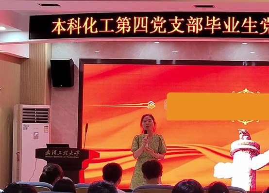 本科化工第四党支部书记冯婧为毕业生党员送上祝福,并分享了两个关键词,一是收获,大学四年的生活画上了一个圆满的句号,即将前往人生下一个阶段,一分耕耘,一分收获,希望每位毕业生党员们都能砥砺前行,通过奋斗收获新的成绩。二是感恩,个人的成长离不开家人的支持、朋友的陪伴和老师的培养,学会常怀感恩之心,常为感恩之行,并祝愿所有毕业生党员们带着母校的祝福奔赴更广阔的天地。
