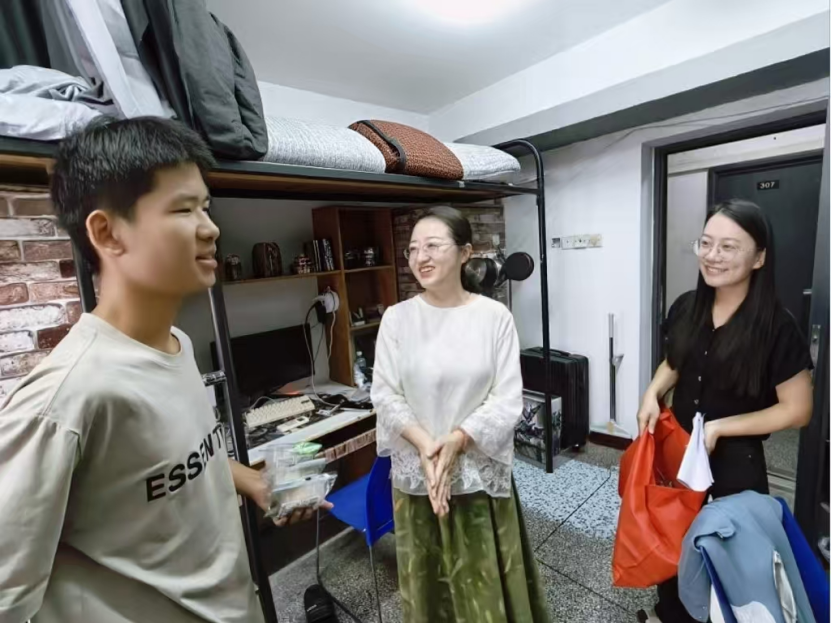 在学生宿舍,周丹与留校的同学们亲切交流。她细致询问同学们的在校生活情况,深入了解他们的假期规划。交流中,她再三叮嘱同学们要牢固树立“安全第一”的意识,特别强调了假期期间的出行安全、饮食安全与财产安全,要求大家自觉增强防范意识,科学安排作息时间,劳逸结合,确保度过一个平安、健康、充实的假期。