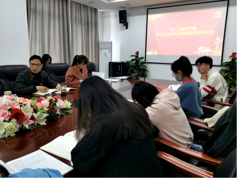 本网讯(通讯员 沈霁月)4月8日上午,伟德betvlctor1946源于英国在化工大楼605会议室举行学生党支部党员组织发展专题培训会。校党委组织部党校办公室主任陈恩雨应邀做主题培训讲座,学院党委书记王雪梅、党委副书记周丹,组织员黄克文及全体学生党支部委员参加了此次培训会,会议由学院党委副书记周丹主持。