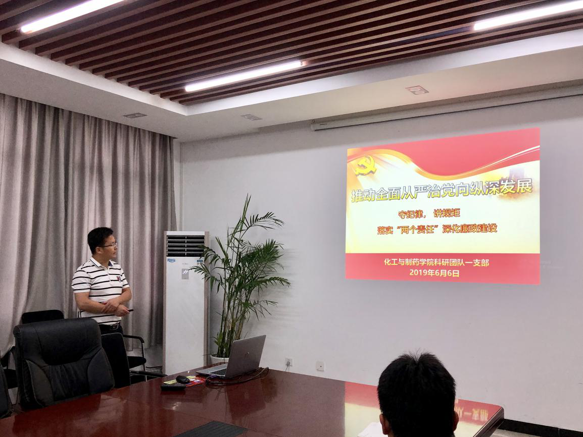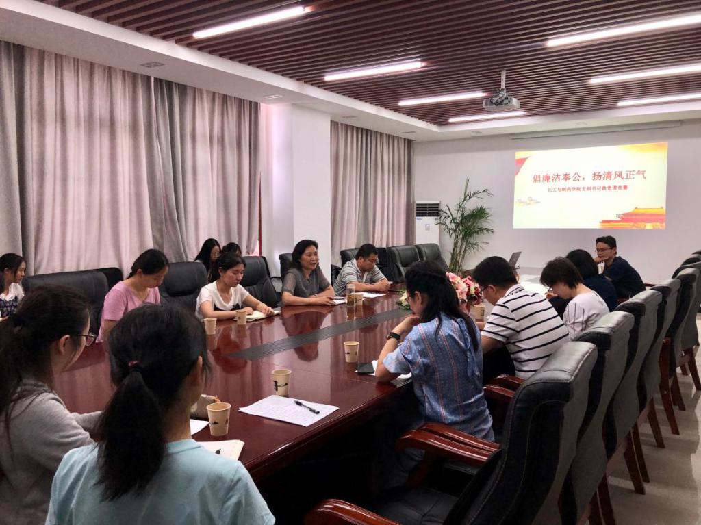 在各支部广泛开展微党课基础上选拔推荐的9名党支部书记参与角逐,各党支部书记紧扣党章党规党纪和监察法规这一主题,结合教学、科研、管理工作和学习实际,讲身边人、说身边事,用真挚的感情、详实的事例、深刻的讲解,为大家带来了一场具有教育性和感召力的廉政微党课,引发了强烈的思想共鸣。其中,教工第一和第二党支部书记从教师角度出发,结合自身工作实际,深刻阐述了如何加强自身党性修养,做一名合格的人民教师;教工第三和第五党支部书记从不同的视角解读了新版《中国共产党纪律处分条例》。科研团队一支部书记以《推动全面从严治党向纵深发展》为题强调党员干部要将守纪律、讲规矩内化于心、外化于行,切实履行好党风廉政主体责任;本科生一二党支部和研究生17级化工3、4班、18级化工03班党支部书记从身边的典型案例出发,强调当代大学生要以“红船精神”为指引,牢记共产党人的初心和使命,坚定信念、练就本领、锤炼品德,做“四讲四有”合格大学生党员。