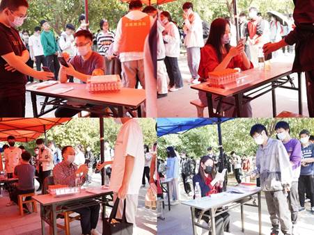 “下一次党员下沉是什么时候?记得叫上我!”自学校开展核酸检测党员下沉以来,化药学院各师生党支部热情高涨、积极参与。11月10日,学院党委书记汪铁林、院长易群积极带头参与核酸检测工作,学院省级党建工作样板党支部能源化工教师党支部、“许志伟”学生党员先锋队、校级样板党支部研化学工程党支部、研化学工艺党支部的师生们积极下沉核酸检测现场。当天,各师生党员报到后迅速进入工作状态,从上午11点到下午1点半,师生党员们始终坚守岗位,有条不紊展开扫码及秩序维持工作,很好的配合医护人员安全、平稳、高效地顺利完成核酸检测彰各环节任务,彰显了学院党员的责任与担当。