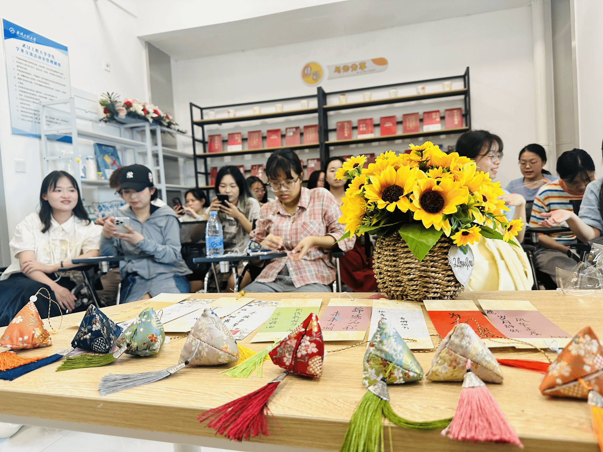 “缝香为礼”环节,主持人为同学们介绍了端午节缝制香囊的寓意并教授缝制方法,大家兴致勃勃地挑选布料和香料,从穿针引线开始,投入到全神贯注的缝制中。