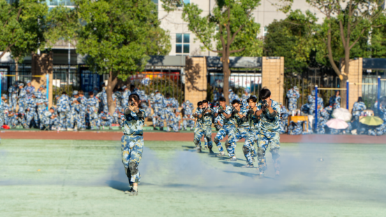 分列式汇演中,军训团一营一连化药学子们身着迷彩,步伐矫健,队列整齐划一,口号响彻云霄,以昂扬的斗志和饱满的热情,向学校、向教官、向家长、向自己交上了一份满意的答卷。