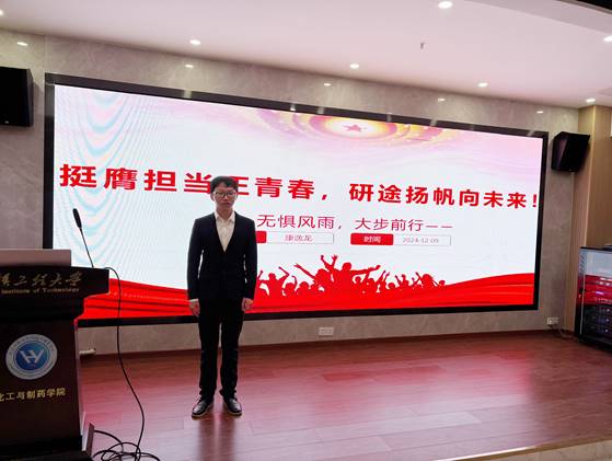 2023级化工7班康逸龙在《不惧风雨、大步前行》的演讲中,分享了自己在实验室的困惑和成长。他讲述了如何从自我怀疑中走出,学会拥抱压力,勇敢面对挑战。康逸龙呼吁,即使在困境中,也要保持积极的心态,勇敢前行。