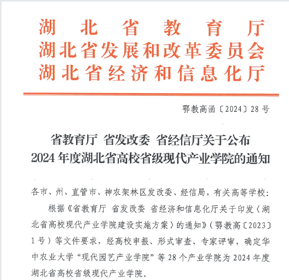 (通讯员 吴风收)近日,湖北省教育厅、湖北省发展和改革委员会、湖北省经济和信息化厅联合发布了《关于公布2024年度湖北省高校省级现代产业学院的通知》(鄂教高函〔2024〕28号),我院牵头申报的现代化工产业学院成功获批2024年度湖北省高校省级现代产业学院。