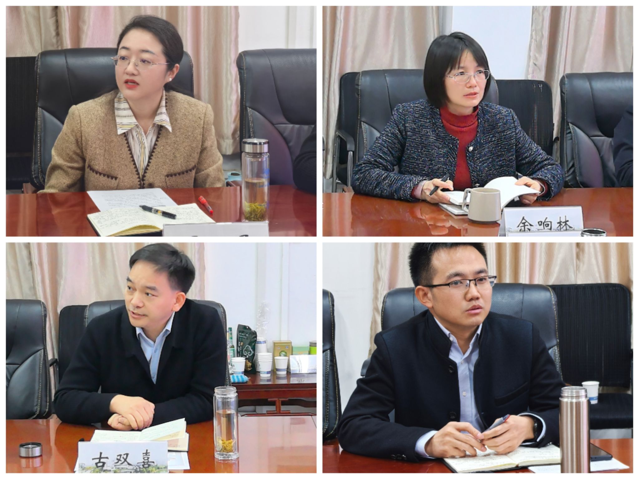 学院党委副书记周丹,副院长余响林、古双喜、吴华东分别结合分管领域工作汇报了相关工作进展情况。