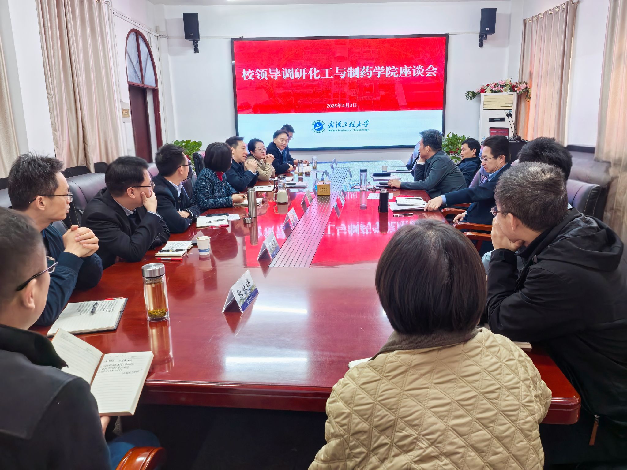 张彦铎强调,学院要做好三件事,一是要重视中外合作办学项目,提升国际化办学水平;二是要做实做强湖北省现代化工产业学院,为申报国家级产业学院奠定坚实基础;三是要注重要件建设,谋划好国家级教学成果奖的培育申报工作。张彦铎提出四个“求”的指导意见,一是对学术孜孜以求,要从找准学术方向、把准学术话语、完善学术评价三个方面提升学术水平和科研能力。二是对人才梦寐以求,采用开放性思维和开放性机制,加快改善教师队伍结构。三是对复兴同期相求,发挥传统学科优势,围绕化工学科内核突破,更好服务于国家战略和地方经济社会发展。四是对作风严苛要求,以良好的工作作风和精神状态推动校院两级事业高质量发展。