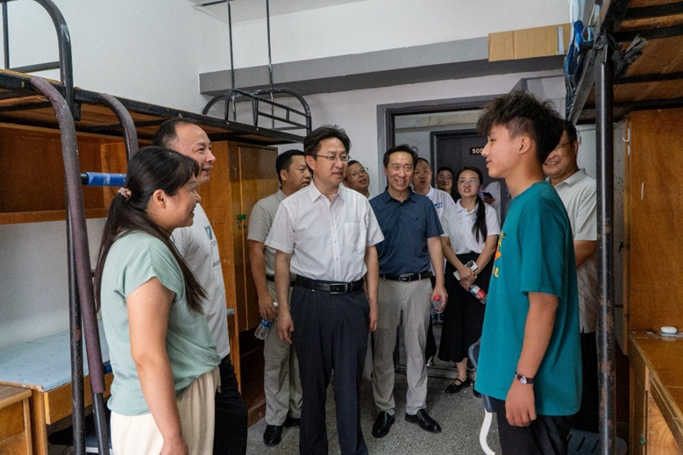 校党委副书记、校长张彦铎,相关职能部门负责人,学院领导班子成员走进本科生新生宿舍,与新生进行了亲切温暖的交流。