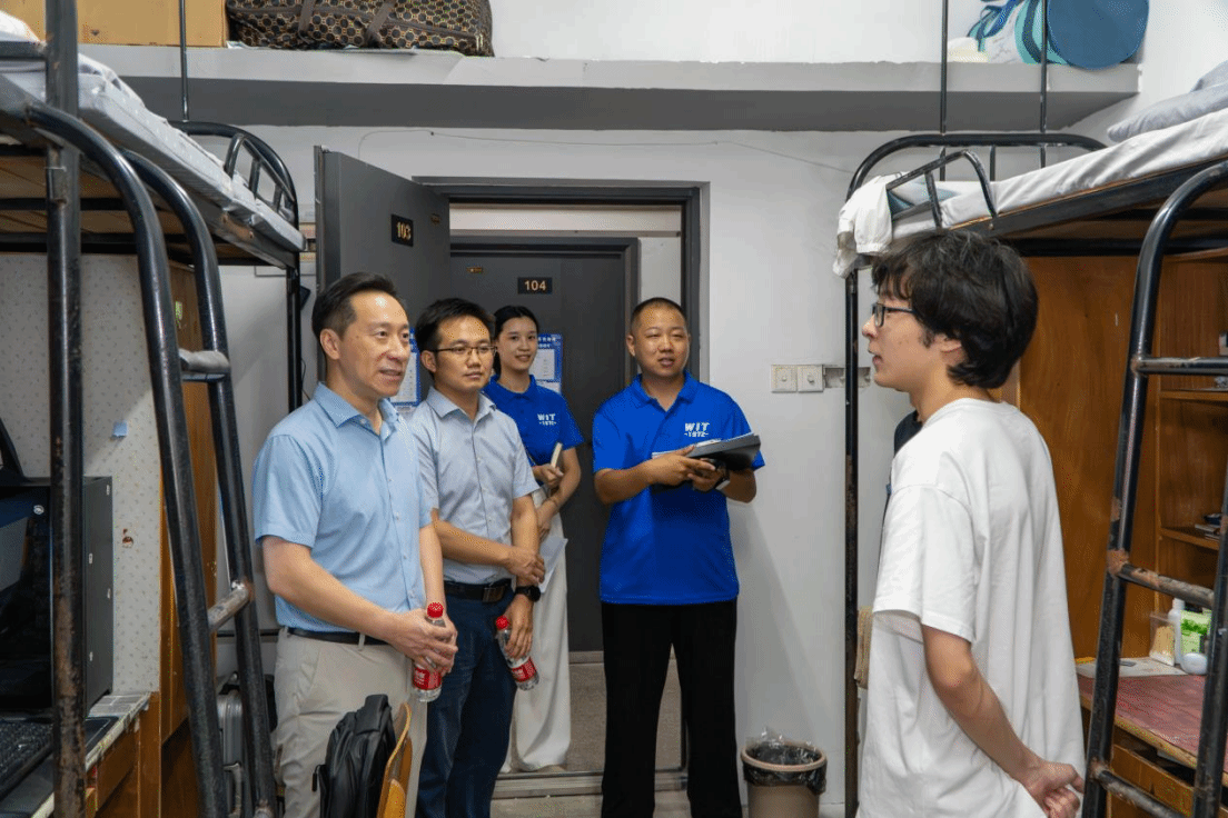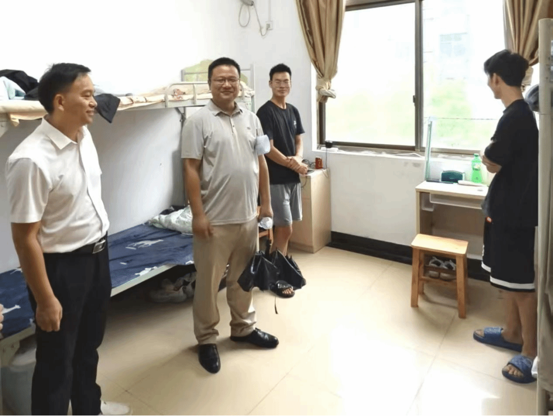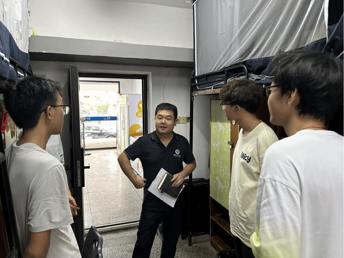 学院领导来到男生宿舍,详细了解新生生源背景、认真核实每位同学的班级信息,叮嘱同学们要尽快完成从中学到大学的角色转变,学会独立自主,做好学业规划;要珍惜同窗缘分,互相关心、互相帮助;要提高安全意识,注意人身与财产等安全。并鼓励同学们:大学是探索未知、追求真理的新起点,希望同学们能珍惜时光,勤奋学习,勇于实践,在工大这片沃土上茁壮成长,书写属于自己的精彩青春篇章。