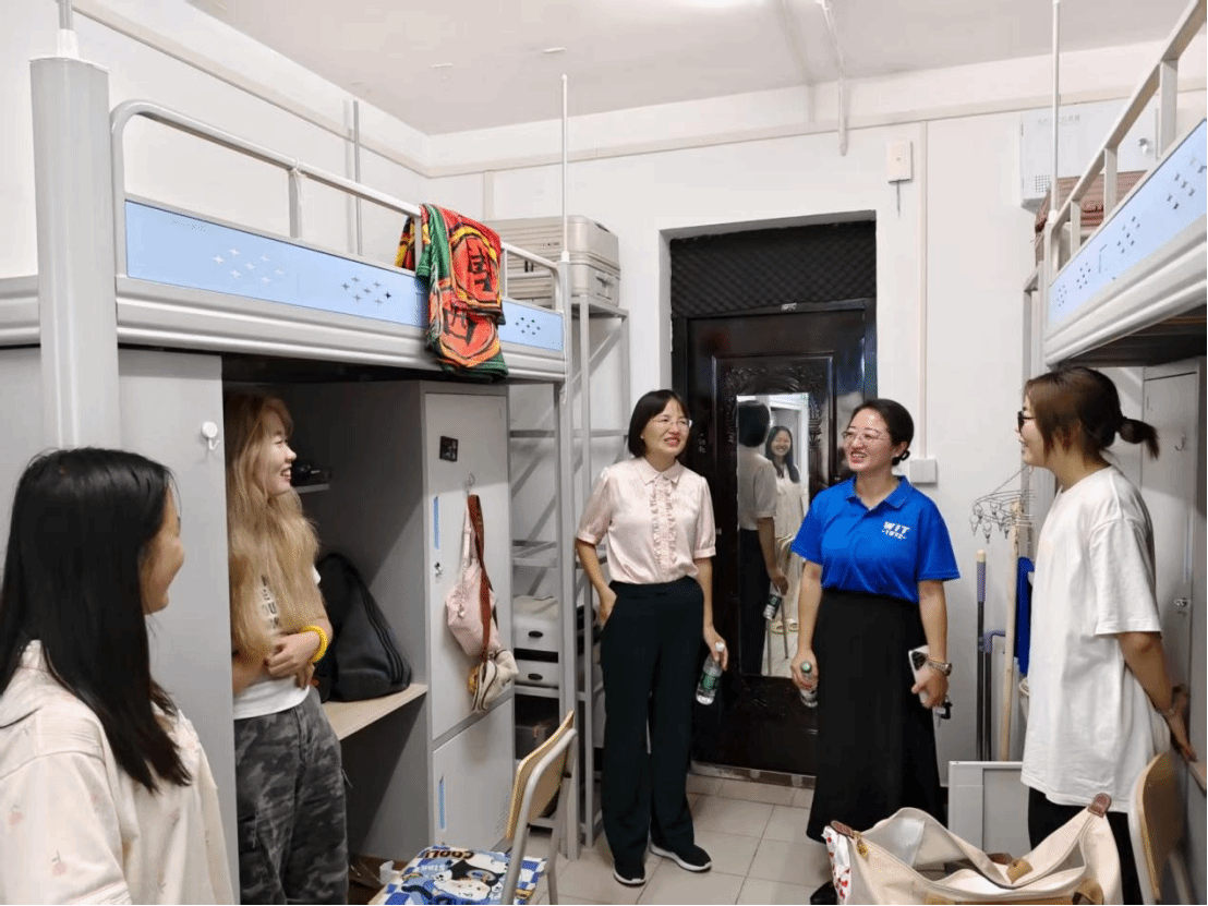 来到女生宿舍,每到一间宿舍,领导老师们都询问“家乡是哪里的?”“学校的饮食还习惯吗?”“有没有遇到什么困难?”详细询问同学们的入学感受,耐心倾听同学们的分享。并特别叮嘱同学们:宿舍是集体生活的“小家”,要共同制定并遵守宿舍公约,营造诚实守信、互助友爱的宿舍氛围;同时注意保持公共区域整洁,切勿在楼道堆放杂物,共同维护安全舒适的居住环境。