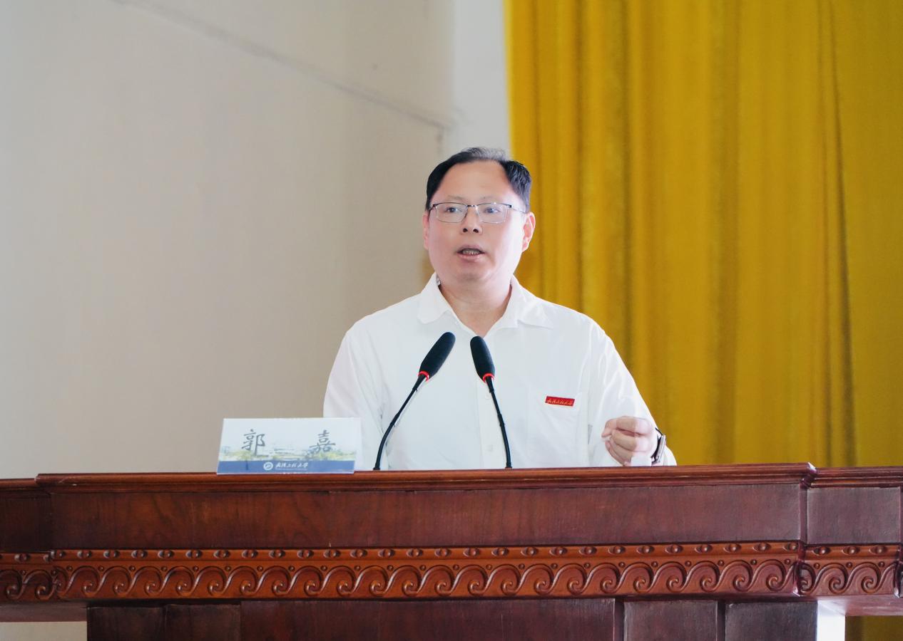教师代表、龙思会教授向新生们送上饱含期许的寄语。他鼓励大家以“空杯心态”开启大学旅程,以好奇与接纳拥抱未知,在新起点重新定义自己,完成witers向winners的华丽转变。
