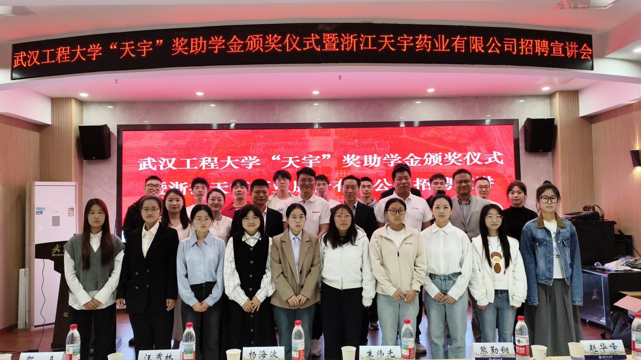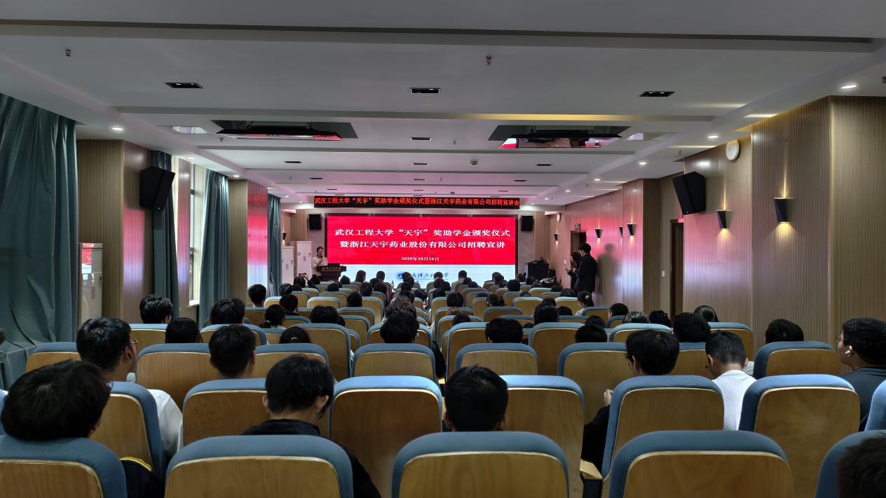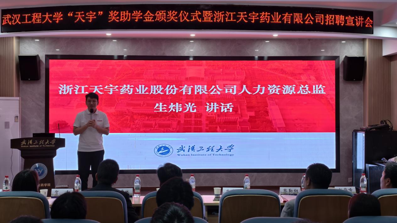 本网讯(通讯员 张锦 张宇轩)10 月 16 日下午 ,伟德国际victor·1946源自 “天宇” 奖助学金颁奖仪式暨浙江天宇药业股份有限公司招聘宣讲会在流芳校区隆重举行。浙江天宇药业股份有限公司人力资源高级总监生炜光、质量控制总工汪秀林、生产经理赵华峰,伟德betvlctor1946源于英国党委书记杨海波、院长熊勤钢及师生代表共同出席仪式,仪式由伟德betvlctor1946源于英国党委副书记周丹主持。