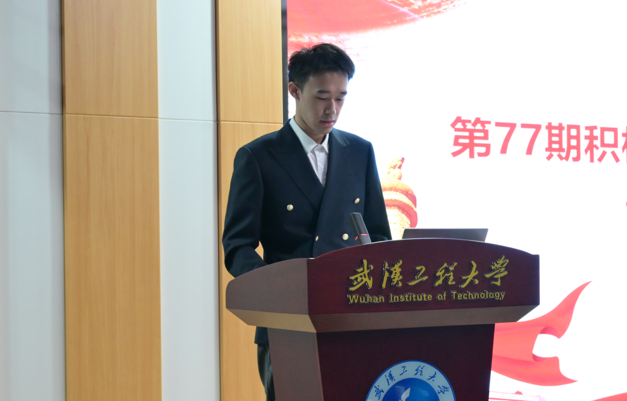第77期入党积极分子代表于惟杰在发言中表示,将深学细悟党的创新理论,严守培训纪律、端正学风,坚持学用结合、知行合一,以党员标准严格要求自己,主动向党组织靠拢。