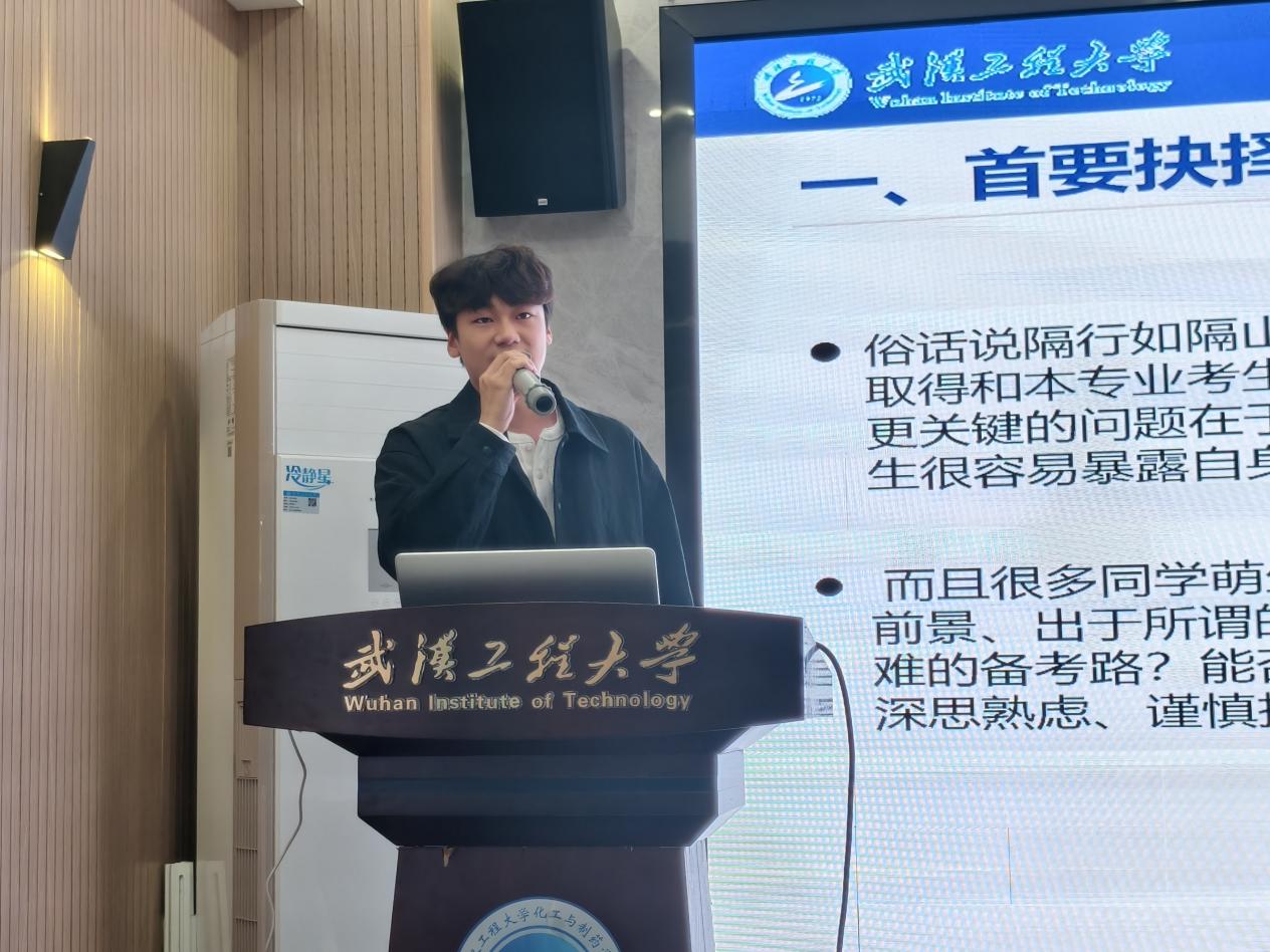 2022级优秀学子郭瑶瑶、李金隆、邓方妤、袁乐涛、张子辰、苑凯依次登台分享,他们已经通过考研、保研等方式录取到华南理工大学、西安交通大学、厦门大学、武汉理工大学、安徽大学、华中科技大学等高校。他们结合自身备考心路历程,从院校选择、复习计划制定、公共课与专业课备考技巧、心态调整、复试准备等多个维度倾囊相授。真挚的分享、实用的建议让同学们深受启发,现场氛围热烈而有序。