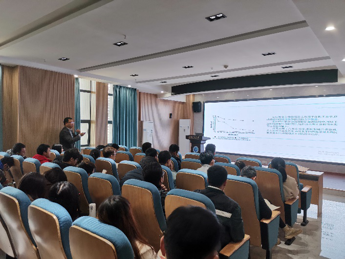 报告过程中,樊庆春老师以真诚、生动、风趣的言语向同学们介绍了我校涂料学科发展与涂料前沿,以精细高分子化工为切入点,讲述了精细化工研究的方法与目的,希望同学们为化学研究的最终目标-产业化不断努力,随后引入到涂料研究领域,从基础的环氧树脂、丙烯酸树脂讲到超支化树脂、非异氰酸酯聚氨酯再到智能涂料,并结合个人科研实践讲述了涂料产业各阶段的研究方向与研究成果,最后介绍了化工过程强化与微反应器的相关知识,使同学们进一步加深了对产业化的深度认知。