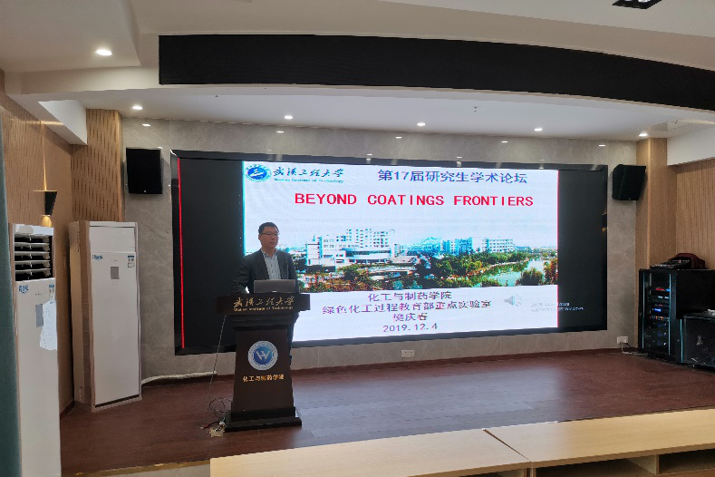 本网讯(通讯员 高友智 )12月4日上午,应伟德betvlctor1946源于英国,绿色化工过程教育部重点实验室,湖北省新型反应器与绿色化学工艺重点实验室邀请,伟德国际victor·1946源自樊庆春副教授在流芳校区大化工楼多功能报告厅做了一场题为“Beyond Coatings Frontiers”的学术报告,报告会由伟德betvlctor1946源于英国副院长龙思会教授主持,伟德betvlctor1946源于英国100余人聆听了报告。