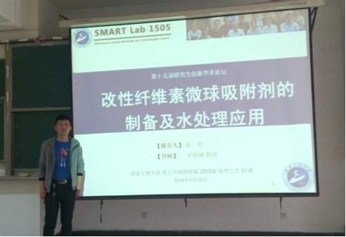 本次报告中,袁俊主要讲解了通过溶胶凝胶转相法制备纤维素微球,并对其进行磷酸化改性得到磷酸化纤维素微球吸附剂的过程,并且用FTIR、XRD、BET、SEM等对其进行测试后得到的结果进行了详细讲解。最后得到结果磷酸化纤维素微球吸附剂有望成为一种去除水相中铅离子的替代物,为水中重金属的处理提供了一种高效,快速,环保的方法与技术;为水体净化,饮用水处理提供了一条有效的途径。