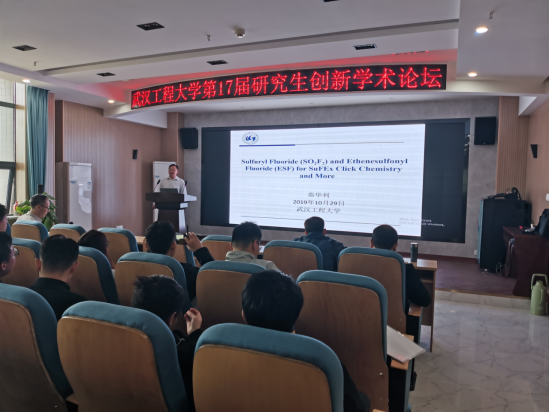 本网讯(通讯员 杨星)10月29日上午,武汉理工大学秦华利教授应邀在流芳校区大化工楼多功能报告厅为伟德betvlctor1946源于英国师生做了题为“Sulfuryl Fluoride (SO2F2) and Ethenesulfonyl Fluoride (ESF) for (SuFEx) Click Chemistry and More”的学术报告。报告会由副院长龙思会教授主持,学院师生共计100余人聆听了报告。此次报告会是学院“研究生创新学术论坛”系列活动之一。
