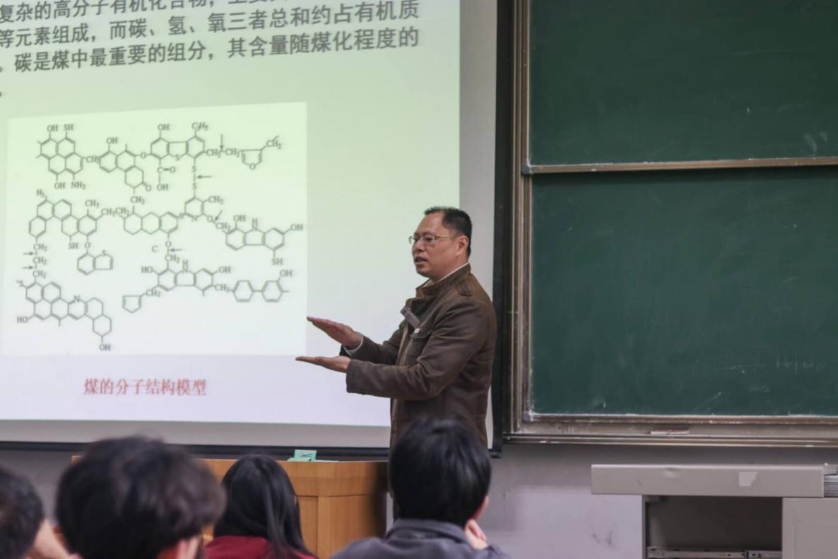 报告会上,郭嘉教授以“煤炭的高效清洁利用”为中心,详细介绍了煤炭在国内乃至全球的分布情况、煤炭的组成、性质、形成过程以及如何实现煤炭的高效利用等学术问题;并由此扩展,介绍了活性炭的吸附剂的制备、应用及化学武器的发展和使用情况,进一步宣传和介绍了《禁止化学武器公约》和禁止化学武器组织。郭教授的汇报内容丰富,让同学们对煤炭的高效清洁利用、绿色化工和化工安全有了全面和直观的认识。