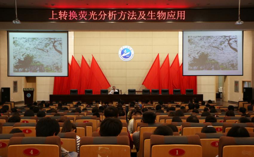 刘志洪教授以上转换荧光分析方法及生物应用为主题向全体师生介绍了上转换荧光分析方法及生物技术在生物医药应用中的优越性,体外检测UC-FRET的方法原理,针对上转换纳米FRET效率低、灵敏度受损等技术难题的解决方法。
